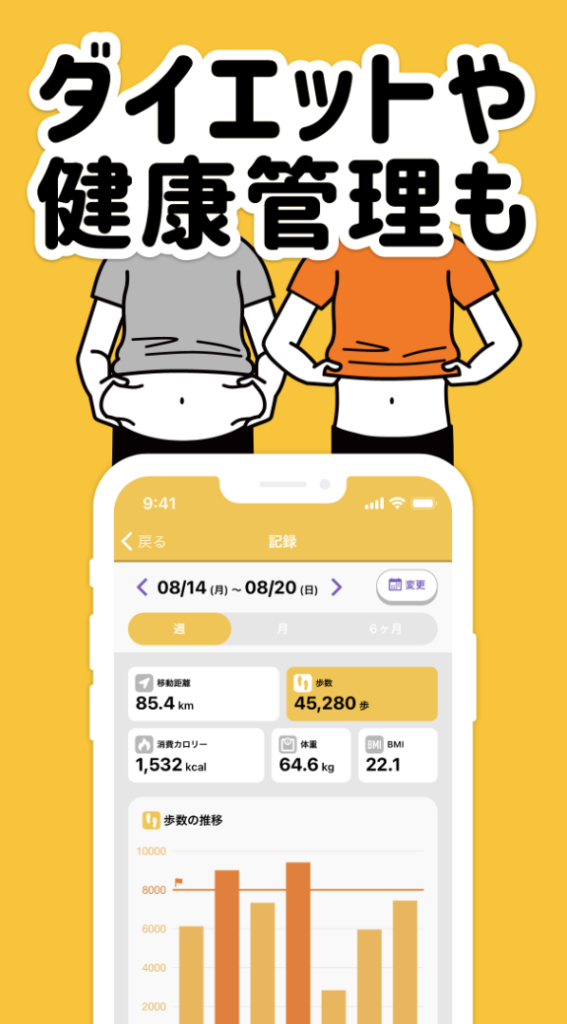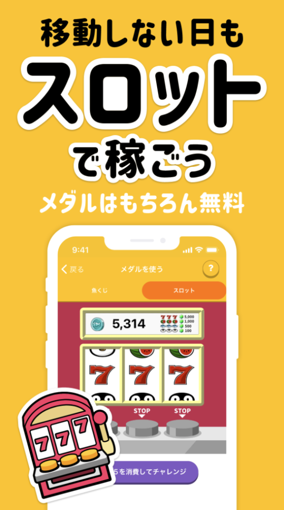 移動距離や歩数に応じてポイント(マイル)が貯まる